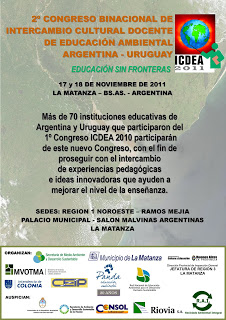Con la participación de más de 70 Instituciones educativas del nivelprimario se llevó a cabo en Argentina el 2º Congreso de EducaciónAmbiental ICDEA 2011 entre docentes de Argentina y Uruguay.